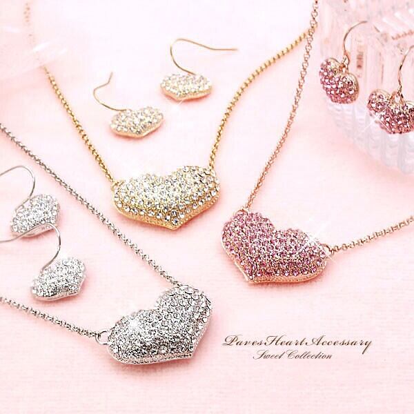 ぷっくりキュートなハートのネックレスとピアスです♪